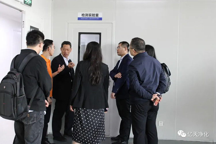 會議第二天,《工業潔凈室通用規范》編制組專家團隊一行,在億天公司總經理夏群艷女士的陪同下實地考察了億天凈化公司的潔凈生產車間和綜合性實驗室,現場聽取夏群艷總經理關于潔凈室方案介紹,并就數字化潔凈室解決方案、潔凈行業的標準化、規范化等議題展開研討。夏總同時介紹億天公司的發展歷程和技術成果,億天堅持空氣凈化行業18余年,與國際領先的環境檢測儀器公司合作,并積極投入自主技術研發和產品創新,目前掌握的凈化技術及可溯源污染物的檢測手段等方面均處于行業領先水平。專家組一行對億天公司緊緊圍繞空氣環境檢測、治理、監測閉環的管理,積極參與標準制定工作,助潔凈行業發展給予了高度評價,億天凈化的數字化工業潔凈室方案也給《工業潔凈室通用規范》的編制工作提供了非常有價值的實際案例參考。