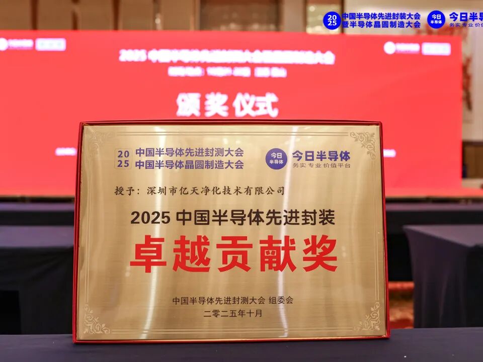 億天凈化作為半導(dǎo)體潔凈領(lǐng)域?qū)I(yè)企業(yè),全程深度參與大會(huì),不僅以交流與分享的姿態(tài),與行業(yè)同仁共尋發(fā)展機(jī)遇,更憑借在半導(dǎo)體潔凈領(lǐng)域的突出成就與深度貢獻(xiàn),一舉斬獲 “2025 中國(guó)半導(dǎo)體先進(jìn)封裝卓越貢獻(xiàn)獎(jiǎng)”,成為大會(huì)焦點(diǎn)之一。
